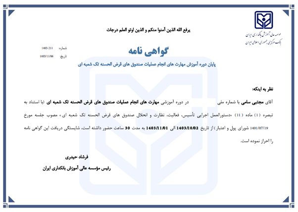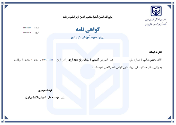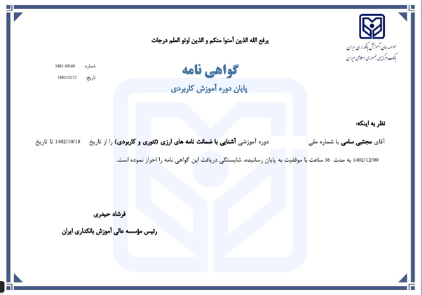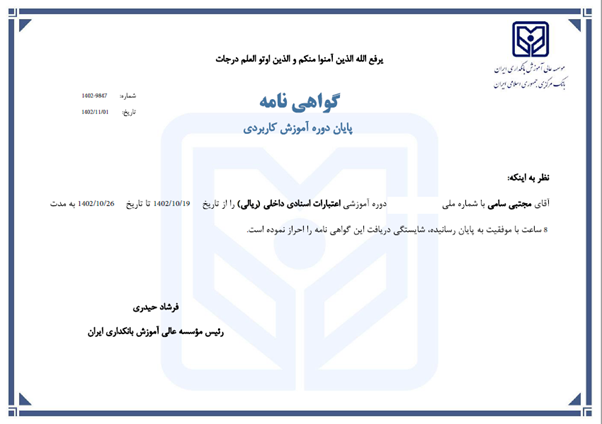 مدارک بانکی مجتبی سامی