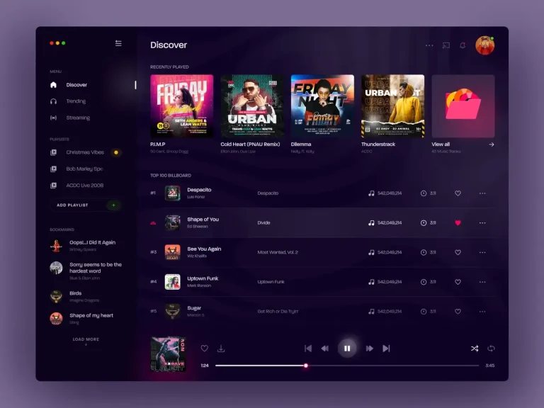 Dark ui design for watch
