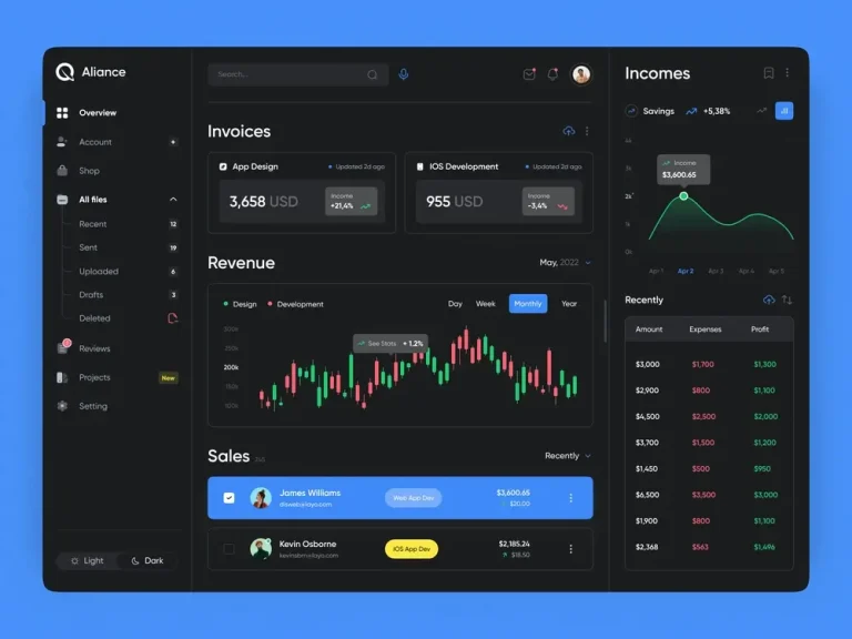 Alliance website dark dashboard design