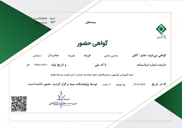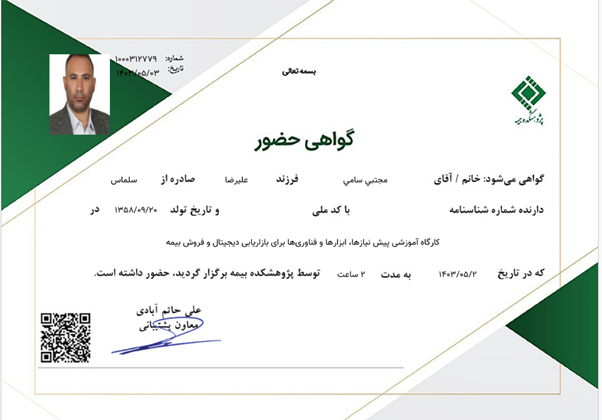 مدارک بیمه مجتبی سامیمجتبی سامی (امین التجار)